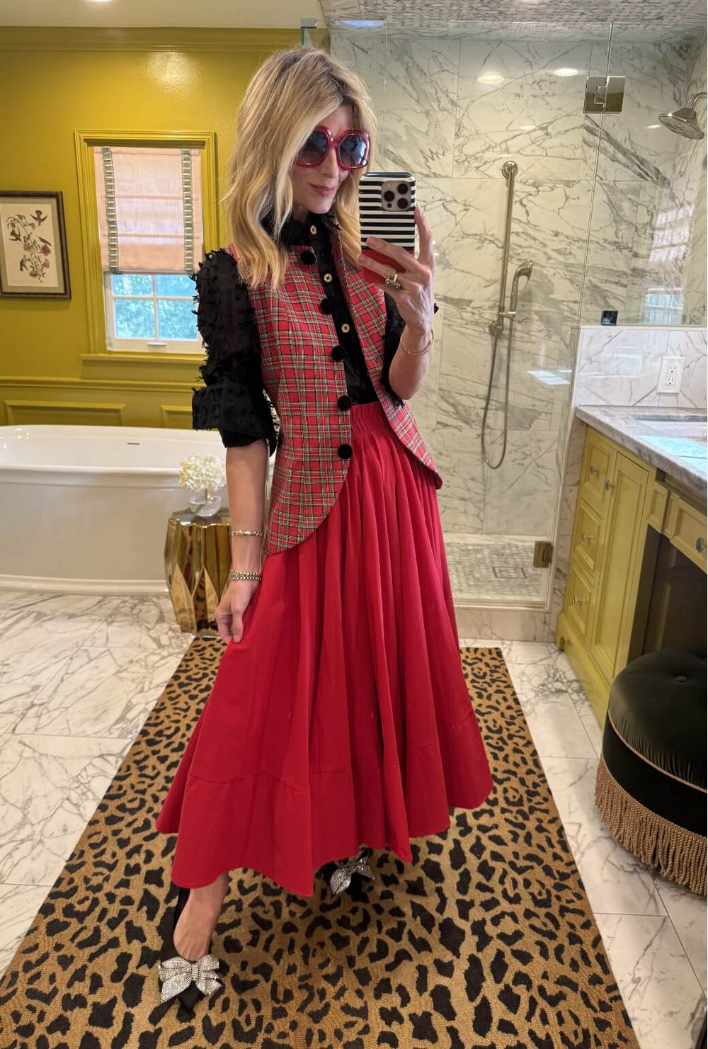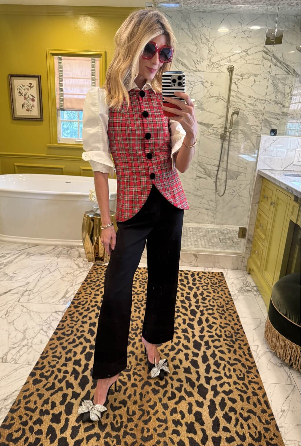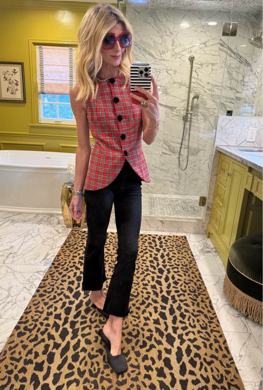 The perfect casual look but punched up for the holidays. Style the plaid Annie Vest with black denim like our cropped flares for an easy but festive look.