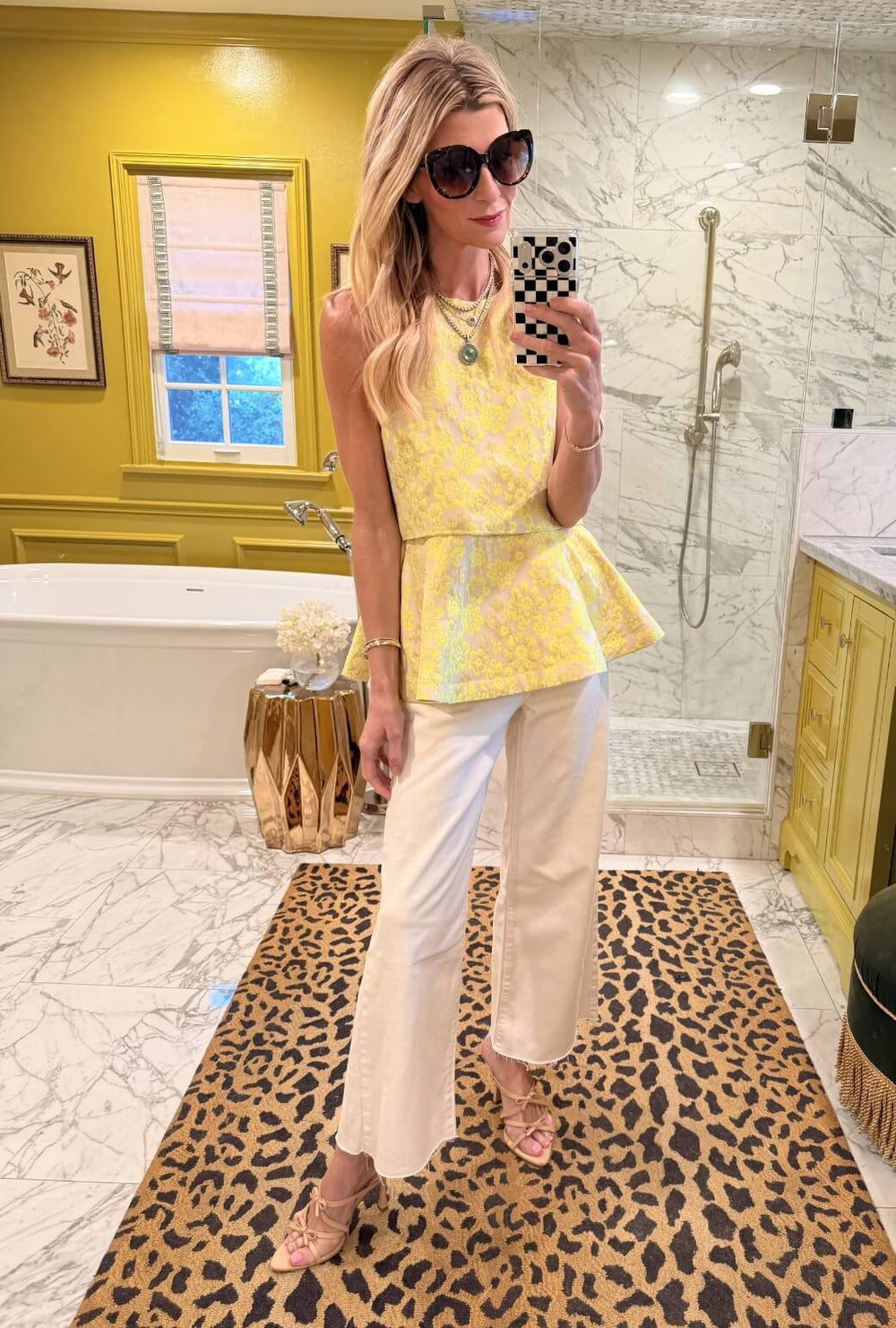 For an elegant, yet comfortable daytime look, pair the Audrey Peplum with your favorite white denim.
