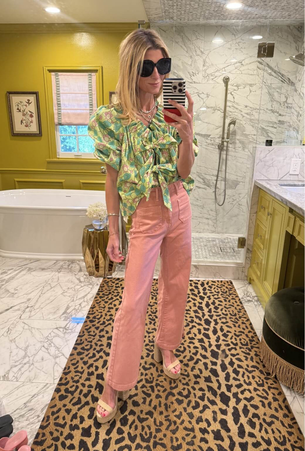 This look was made for spring (or spring break!). Pair the Bettie Ann Blouse with the pop-of-pink Patch Pocket Jeans.