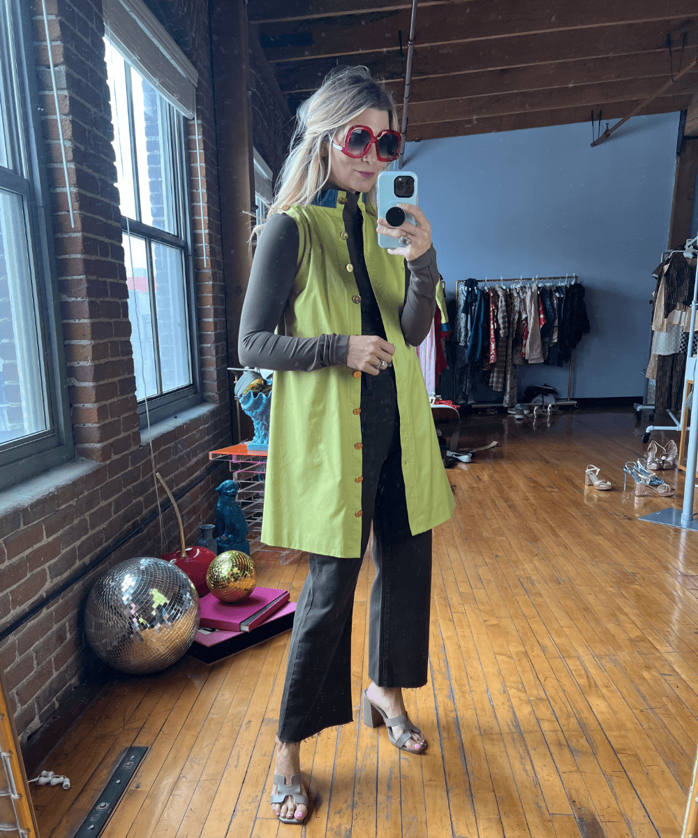 In LA, our Arts District facility uses locally sourced deadstock textiles and vintage accents exclusively, producing several of our styles from “fabric to fulfillment” under one roof. Started with just one sewer (Julia, who is still with us today!), we now employ 30 talented, full-time team members.