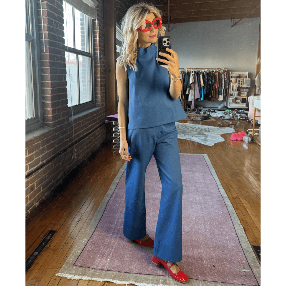 Our cropped Sleeveless Mod Top is a favorite for a reason - timeless, transitional, versatile, comfortable. What's not to love? Crafted in a fading denim textile, she'll go with anything from her matching Charlie Pant to your favorite trouser or skirt. Prefer a bit more pizazz? Check out her splatter-painted twin!