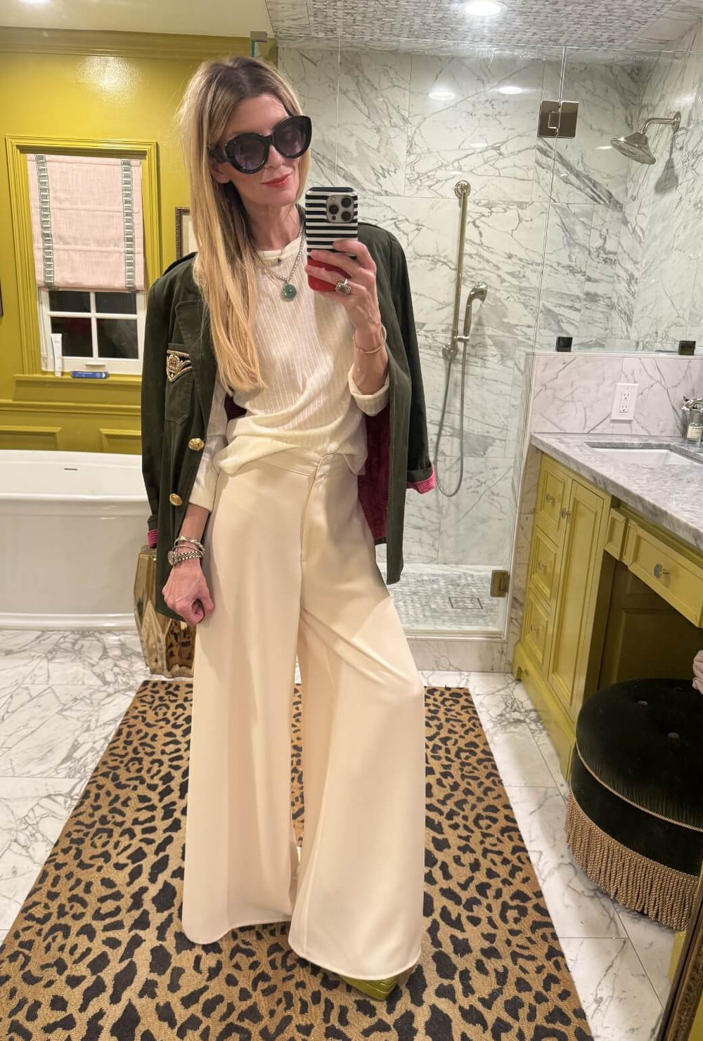 Create luxurious ivory moment by styling our Picadilly Pant with the coordinating ivory tee from the Buru x India Collection. We love our Military Blazer worn over the shoulders.