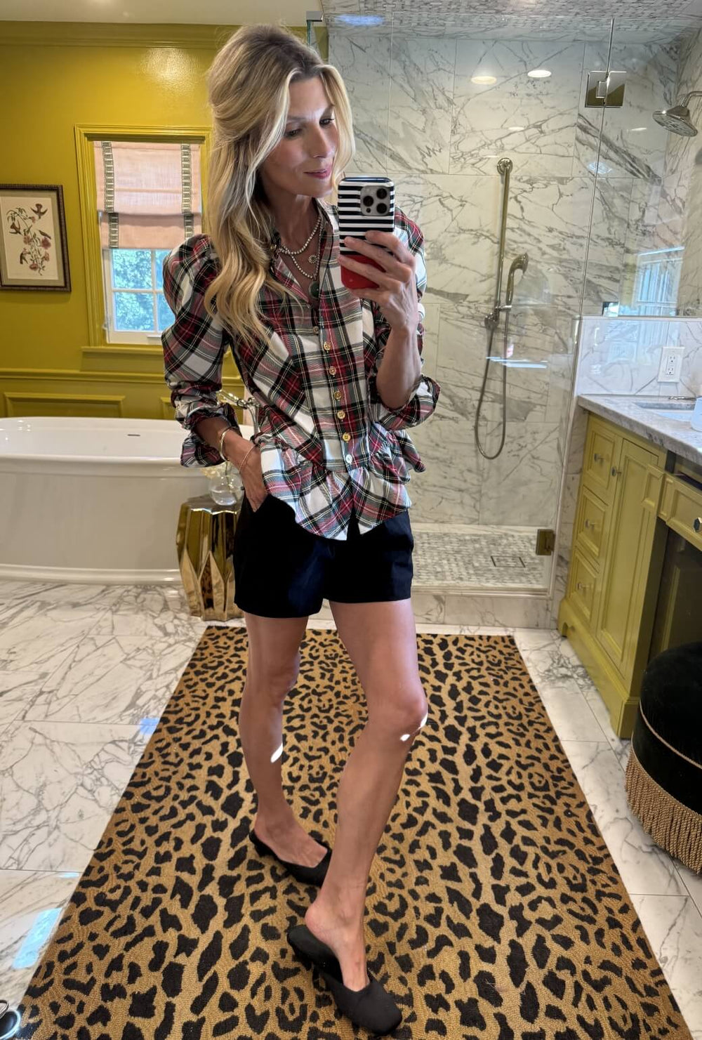 The Holidays are here but the temps are still hot? No worries, this top pairs beautifully with black shorts. Our Flat Front Everyday Shorts are an easy add on.