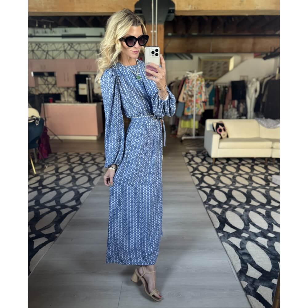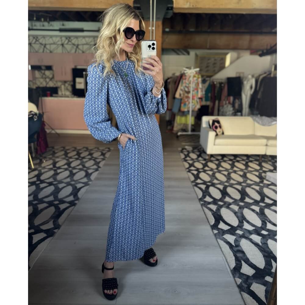 Nothing brings effortless drama and glamour quite like a kaftan-style dress—perfect for poolside lounging, dinner with a view, or an elevated everyday look. Meet The Kristin Dress, a stunning namesake piece from collaborator Kristin Kennedy, now in a charming blue lattice textile. With her breezy maxi silhouette, flowy bishop sleeves, pleated crew neck, and a chic self belt, she’s destined to be your new travel staple (or go-to wardrobe favorite!). Designed with thoughtful details that make her as comfortable as she is beautiful, this dress is one you’ll reach for again and again.