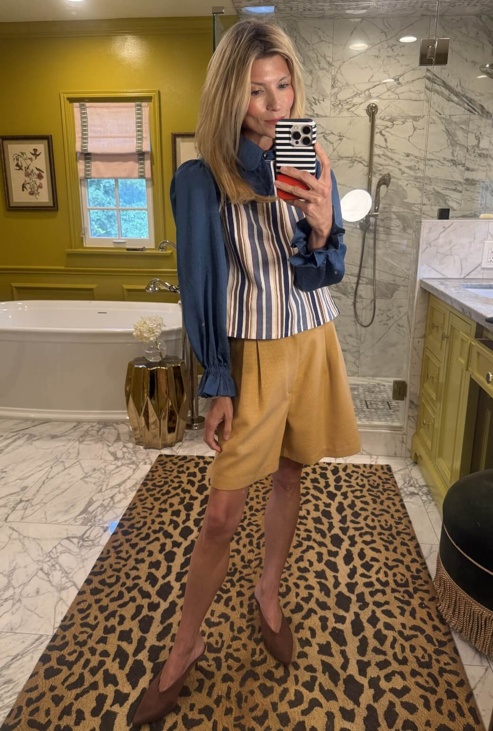 We cannot get over the three pieces from this collection paired together. The ruffle shirt, walking shorts and Farrow Top are autumn chic for any occasion.