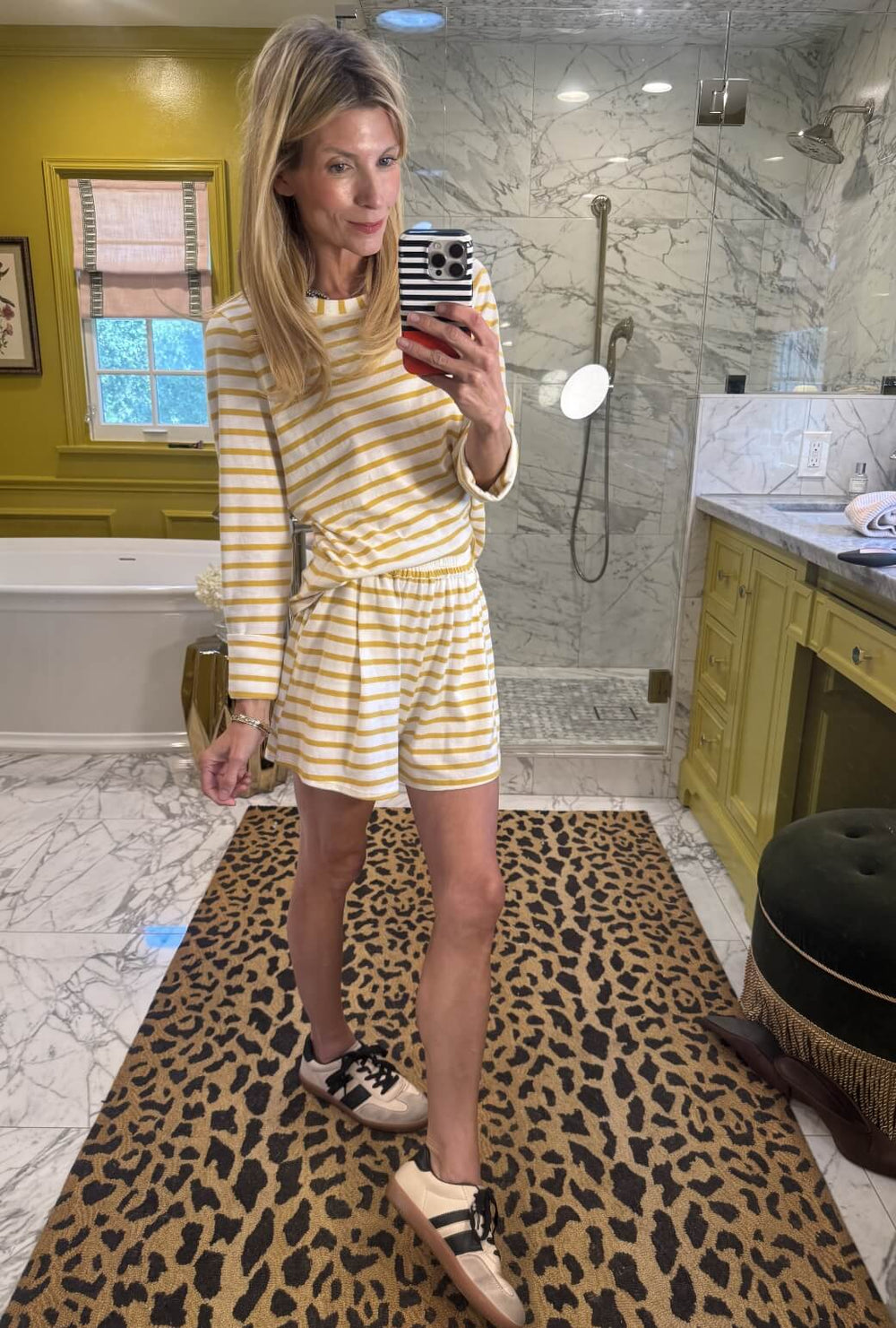 Who doesn't love to lounge and look pulled together while doing it? This knit marigold stripe Classic Tee and Everyday Short combo is classic and sophisticated but doesn't skimp on comfort. A subtle nod to Buru with our signature B embroidered on the back, this lounge set is perfect for travel, a busy day, a lazy day at home, or even sleeping...a true jill of all trades.
