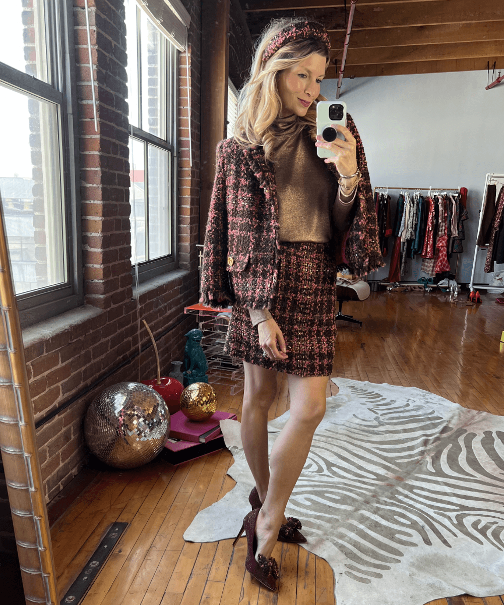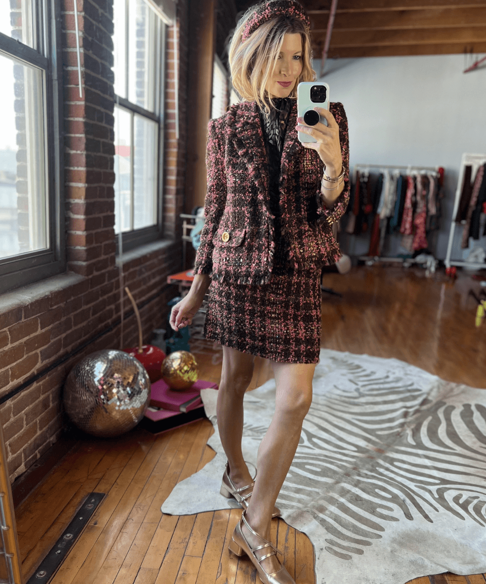 We love her paired with the matching Maggie Mini Skirt - a tweed suit is always a good idea!
