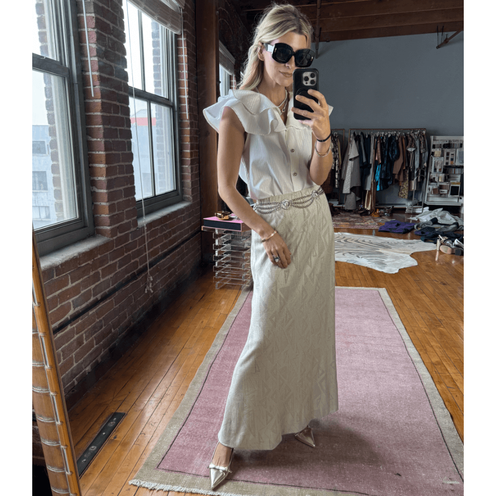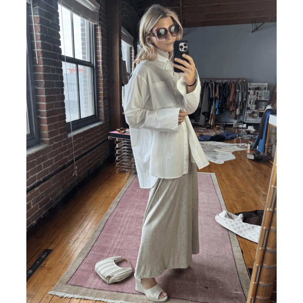 Styled with her matching Boxy Turtleneck, this skirt can be worn anywhere from dinner with friends to errand running to a semi-formal affair.