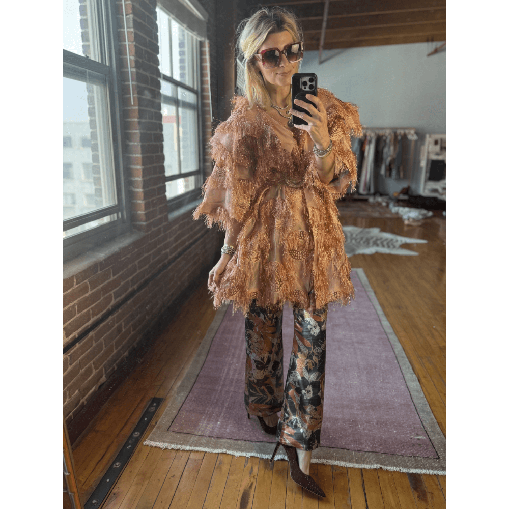 This stunning car coat (with pockets!) in a lightweight, tinsel like textile is the perfect blend of whimsy and chic. Dress it up for the holidays or keep it casual with jeans and your favorite white button down—either way, you're going to make a statement! Added bonus? This beauty is machine washable!