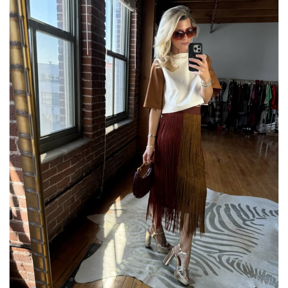 The most gorgeous colors for Fall. Pair this perfectly crafted cropped box top with our rust fringe skirt for a date night!