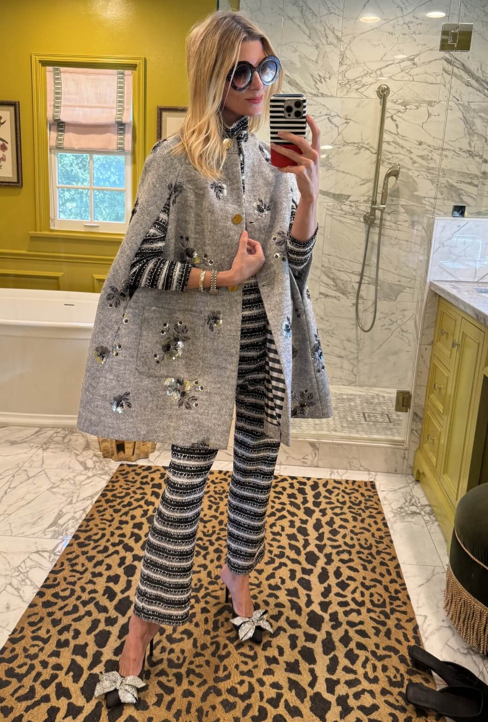 Head to tow in shimmering stripes is one of our favorites for this winter season. Add your favorite flats for a day about town and when it's time to go out add your fave heel to complete the look.
