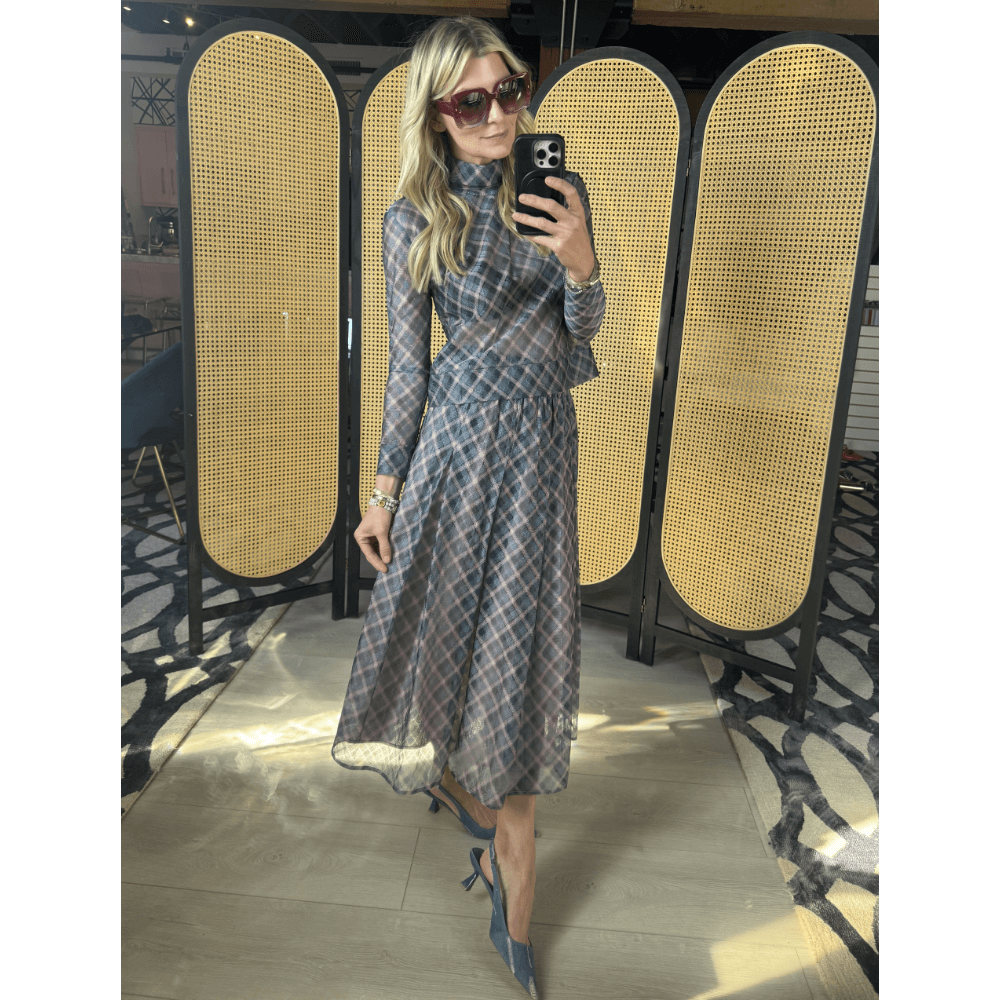 This matching set of sheer plaid pieces is really a dream to wear, and it's a stand-out look even though the colors are muted and sultry. The weight of the fabric lends itself to a sleeker silhouette than some of our other Smocked Waist Skirts, so it's a set that is easy to elevate for an evening out.
