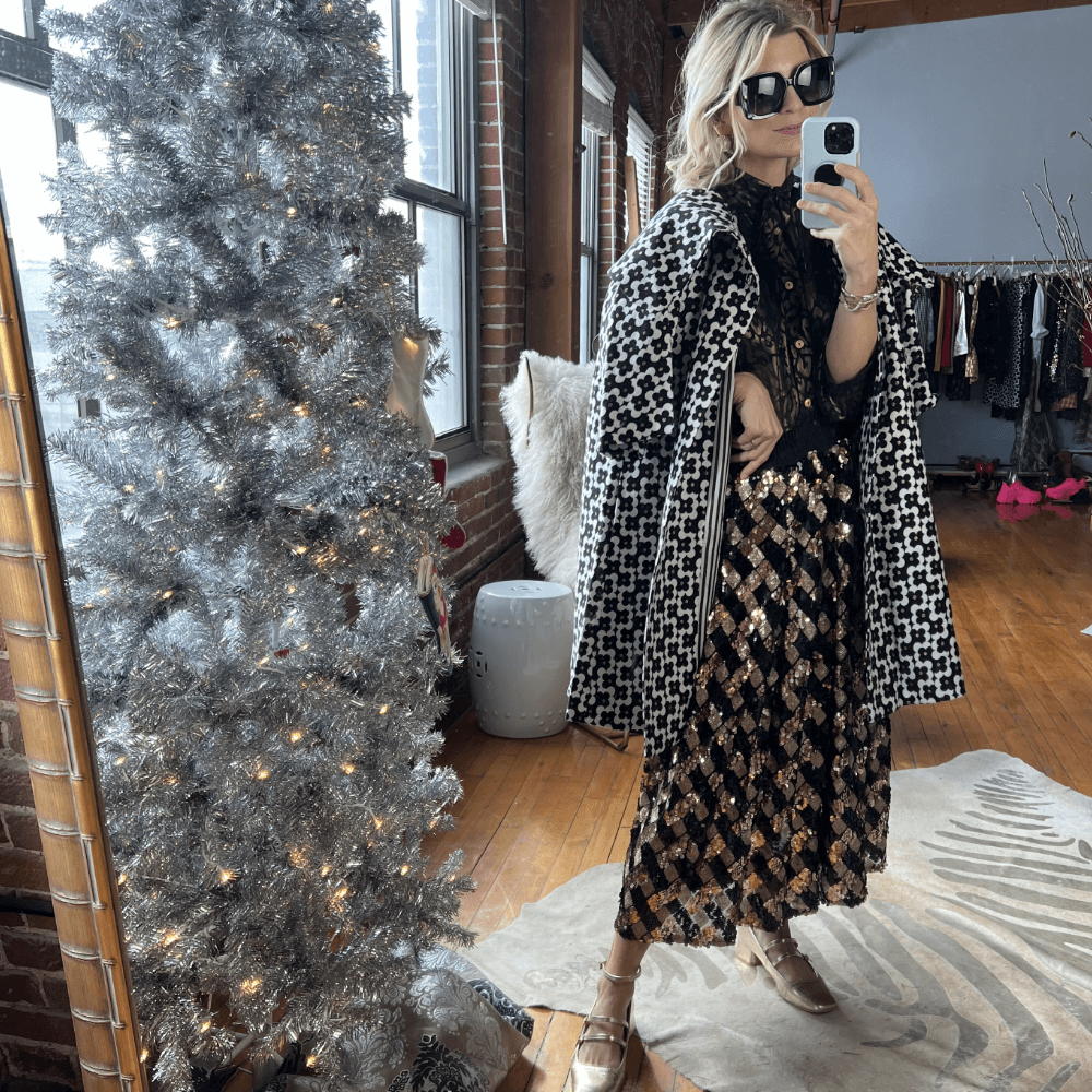 Nothing says glam quite like a pair of oversized black sunglasses paired with sequins.