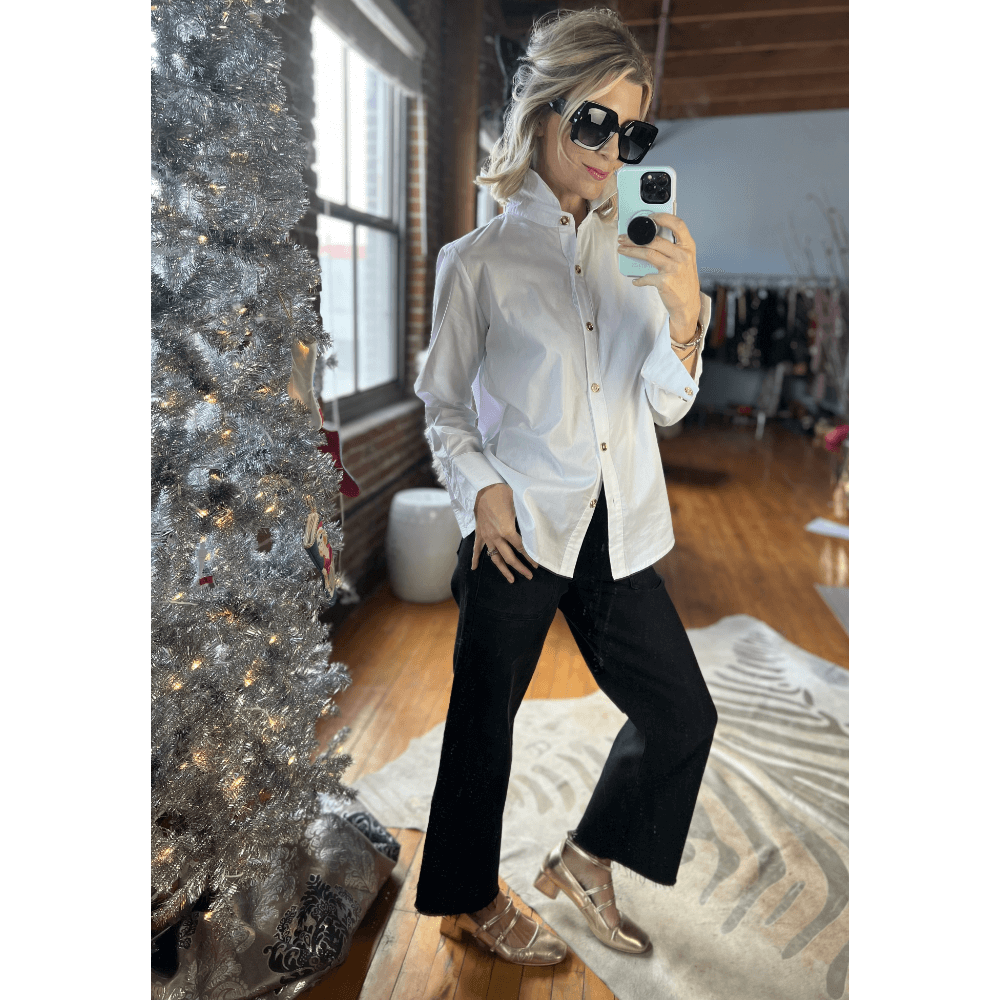 Is there anything chicer than bold sunnies and a classic white button down? According to Jackie O, not really.