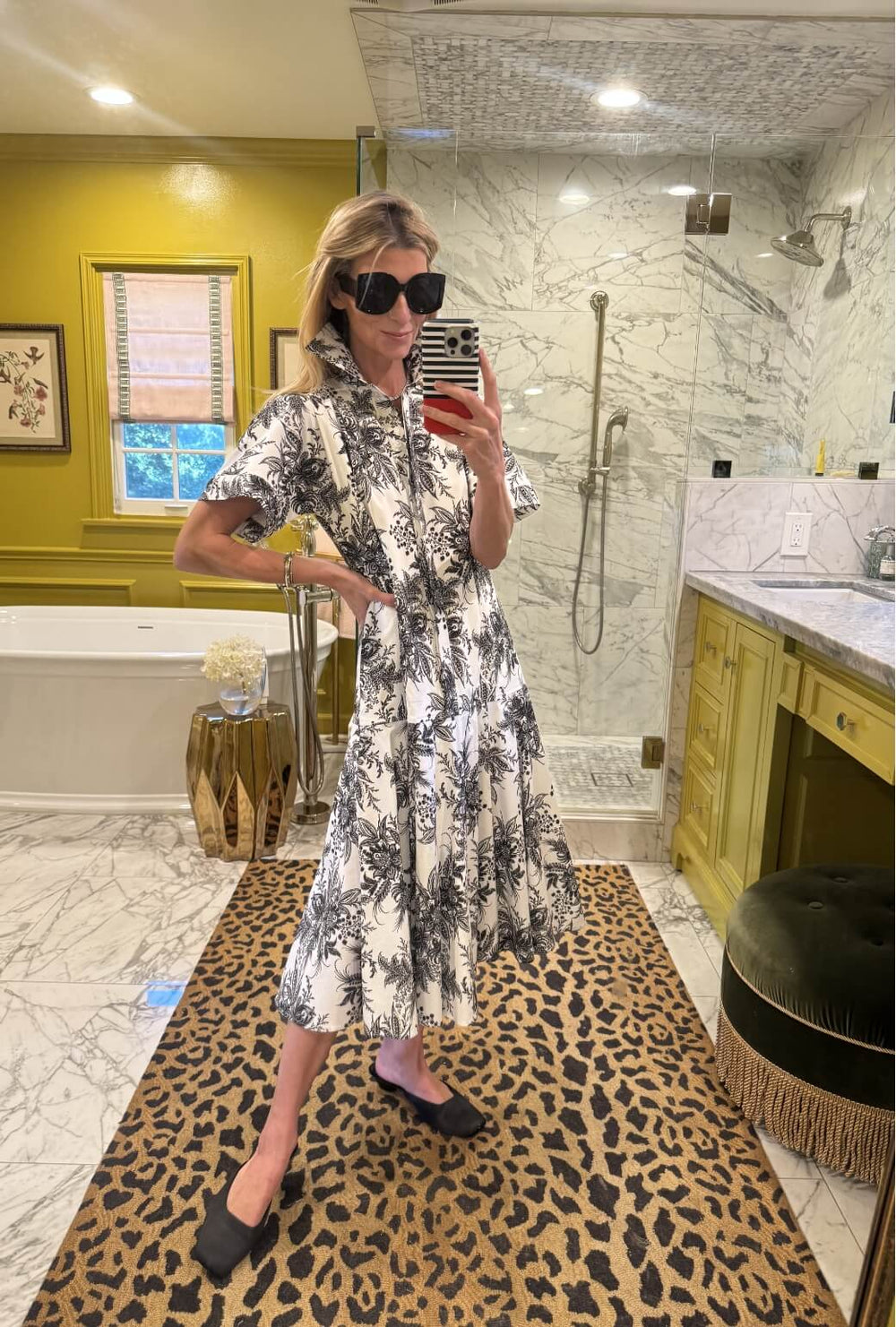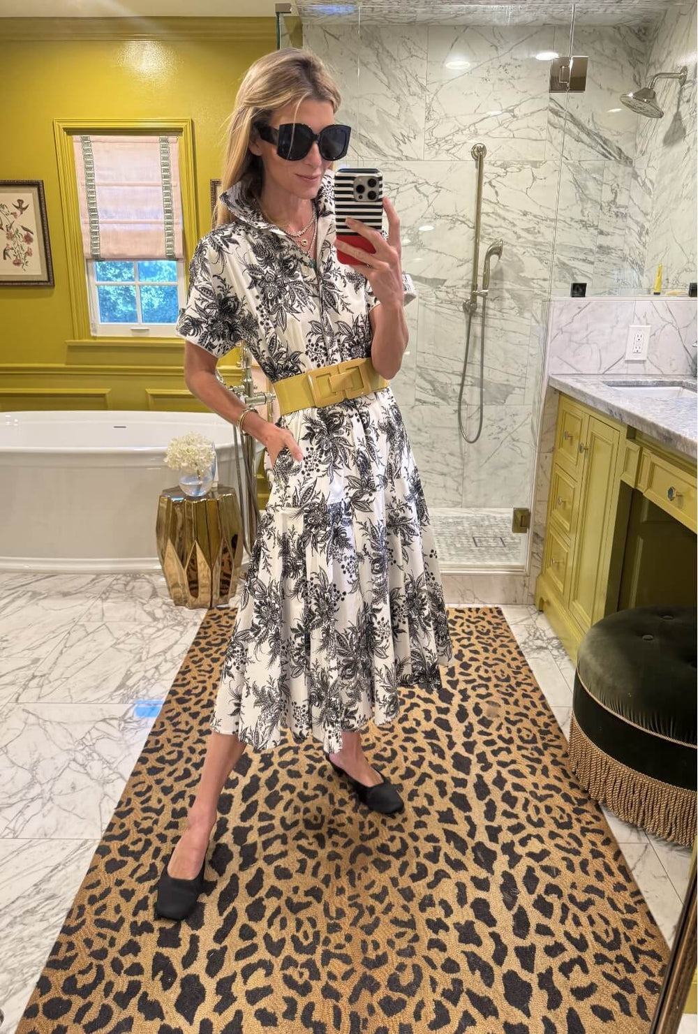 Prefer a cinched waist? Simply add your favorite belt to this black and white beauty.
