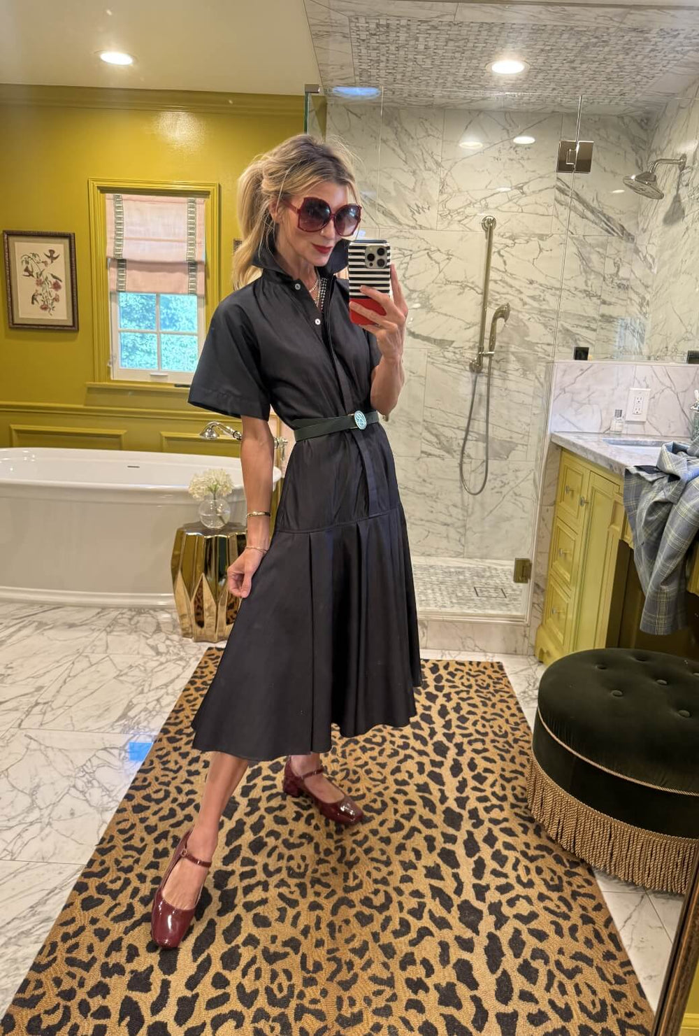 To completely change the silhouette of the Drop Waist Dress, add your favorite belt. We love it with a dark leather option but feel free to add a contrast color for an unexpected pop!