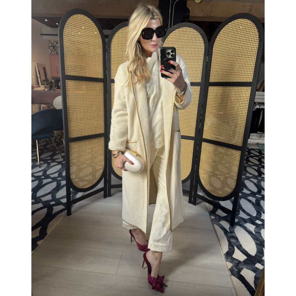 The winter white outfit of our dreams! Pair the matching Everyday Pants with the Long Sleeve Mod Top together and layer the Open Car Coat in Ivory on top. Finish off with a pump that dresses it up just a bit.