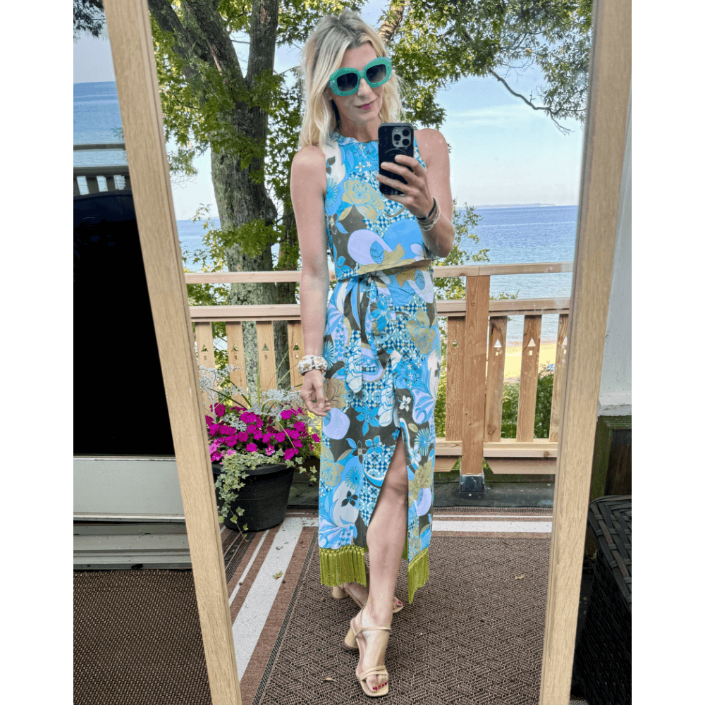 Looking for an elevated addition to your poolside ensemble? Adding this Fringed Sarong to your wardrobe is an excellent choice. Sure, she's technically a sarong with her vibrant retro inspired print; but with the craftmanship and fit of a true wrap skirt and vintage fringe details, she's so much more. She'll easily take you her from pool side to table side with a "finished look."