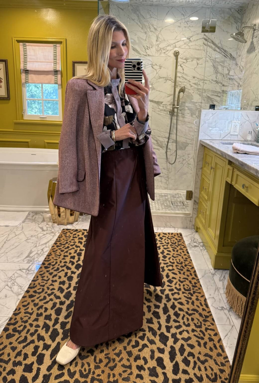 For an everyday look, style with your favorite sweater and blazer combo. We love adding pink and burgundy to this decadent chocolate brown.