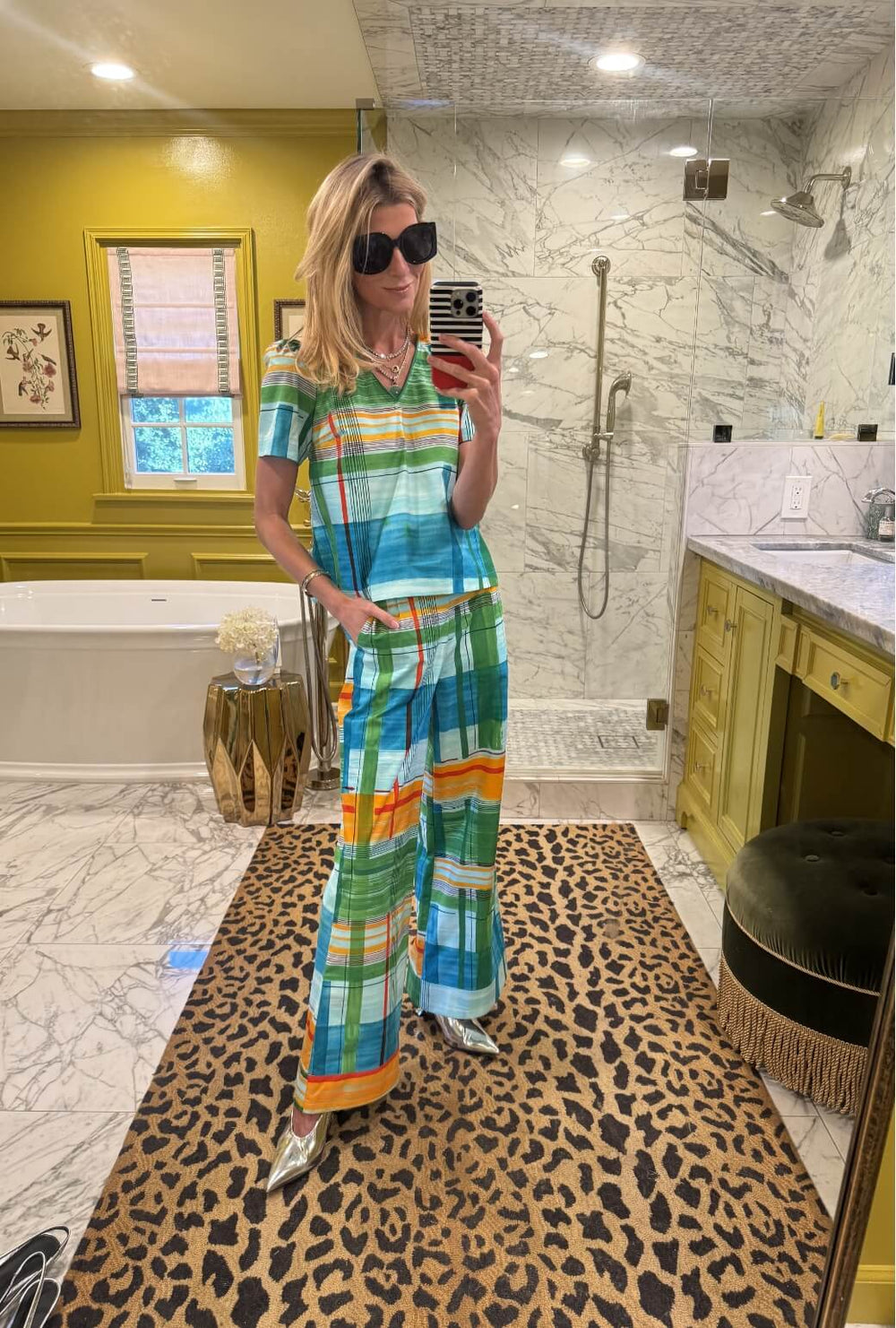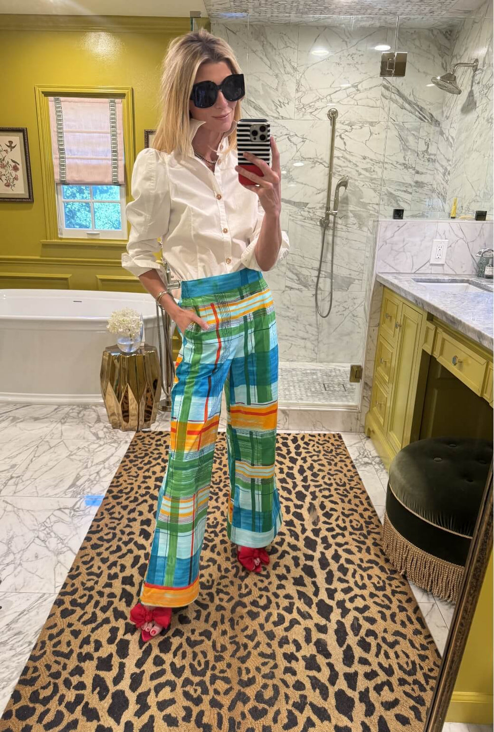 Our Hepburn High Rise Trouser gets a vibrant refresh in this vintage plaid. With an elastic back waistband, pockets (of course), and a wide, polished hem, this silhouette channels retro charm with a modern ease. Pair her with the matching V Neck Lee Top for a head to toe moment, try the Eyelet Lee Top for added texture, or keep it simple with a classic white top for a more toned down vibe. Add heels for cocktails or slip on sandals for a touch of Jackie O at the beach club.