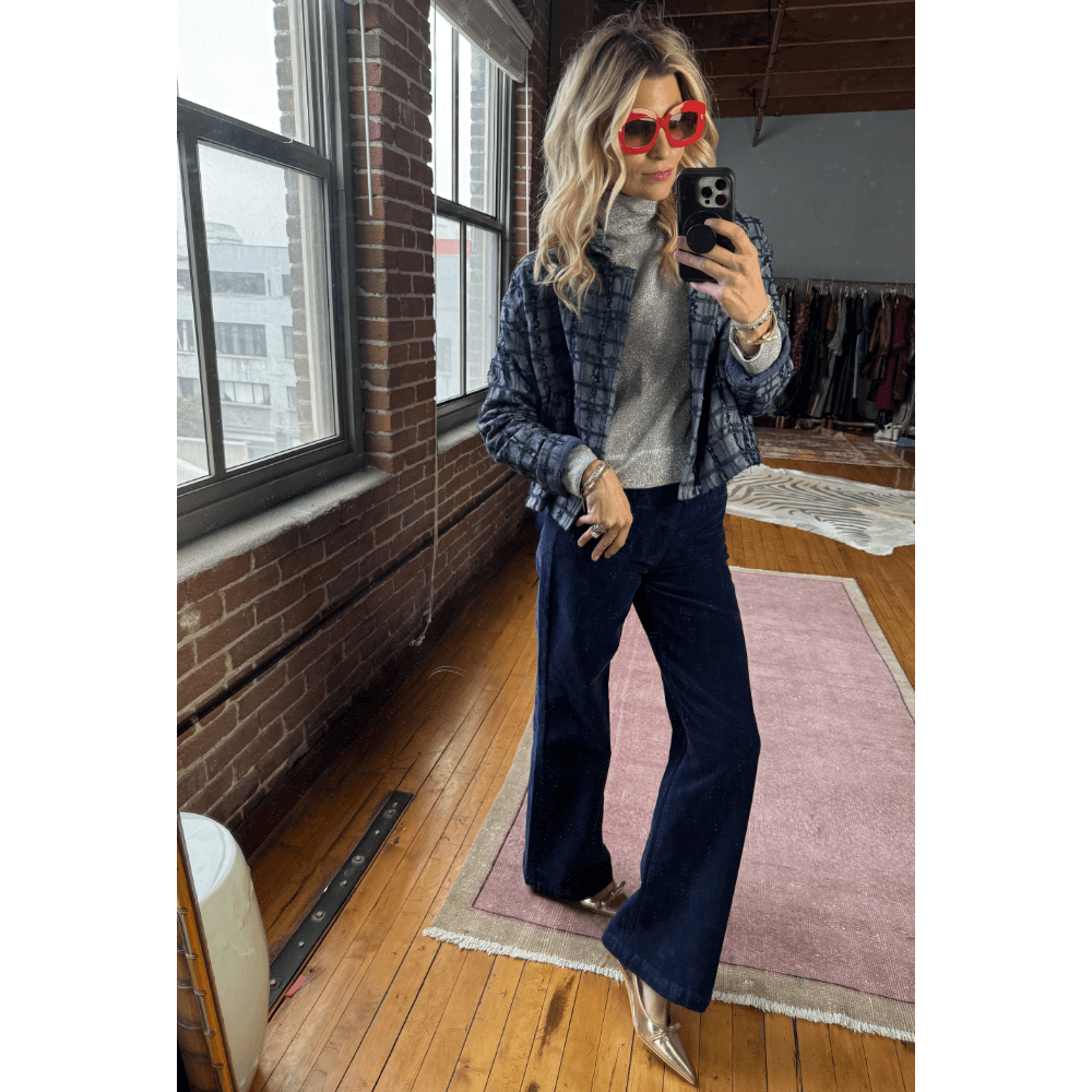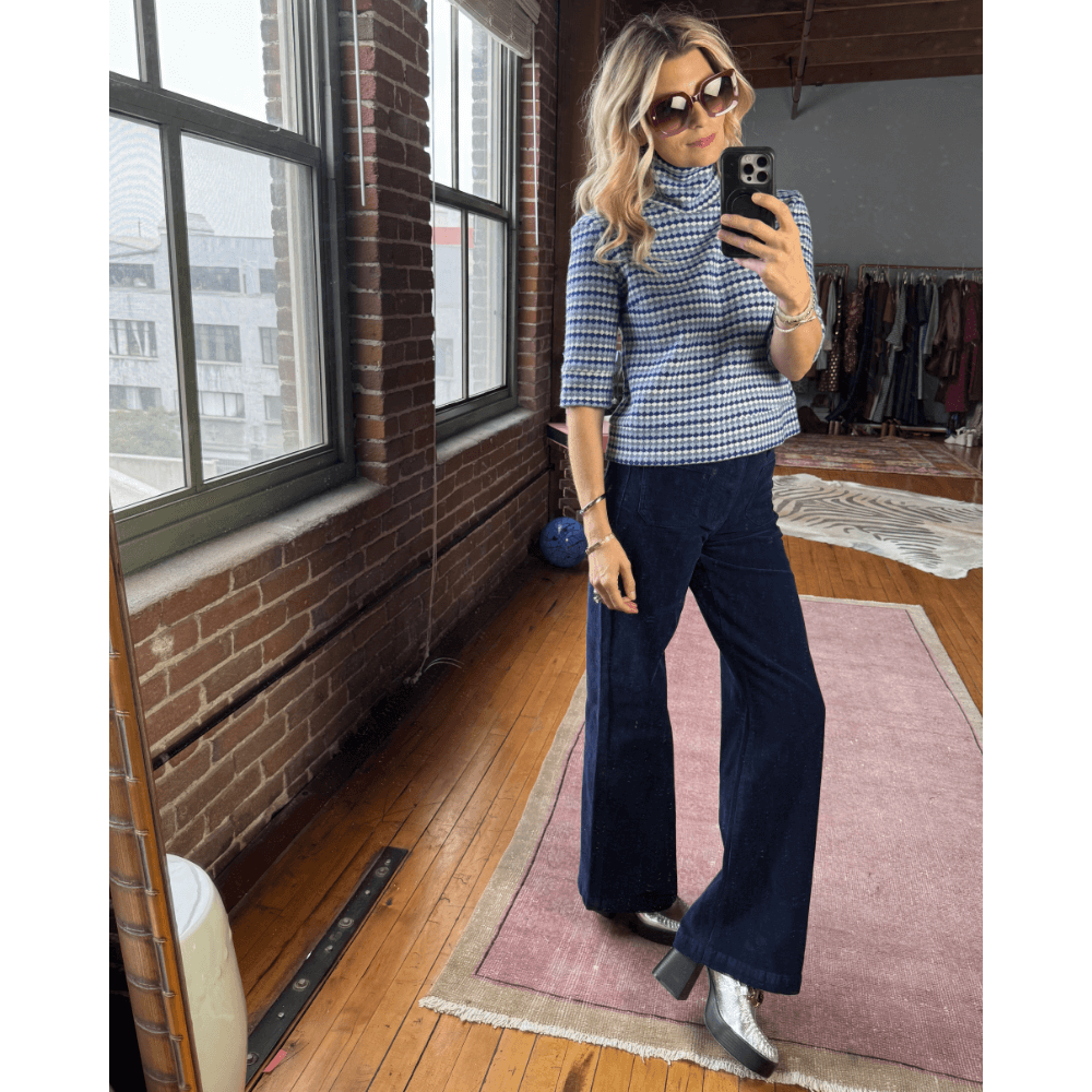 Sparkles and cords are always a good idea in our book! Add our Sparkle Turtleneck with the navy Sailor Cords and layer the Cropped Boyfriend Blazer on top for an effortless look.