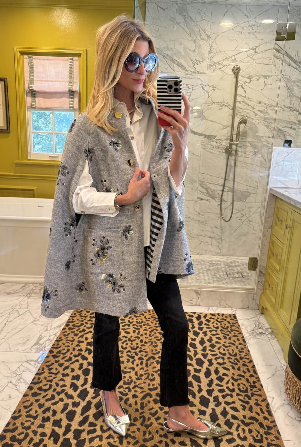 We absolutely love a cape as outerwear - equal parts classic, unexpected and fun! And our Le Cape, in stunning faux wool with sequin and beaded detail is a true statement piece. The neutral gray makes her an easy choice for layering over any ensemble, from casual day to dazzling evening; standout from the crowd with this special look.