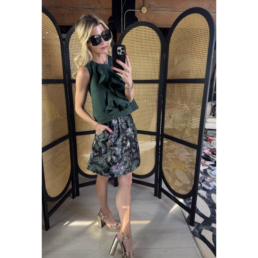 Want to mix up the jade? Pair the Le Ruffle Top with our sage and lilac brocade Everyday Mini Skirt for a coordinating look.