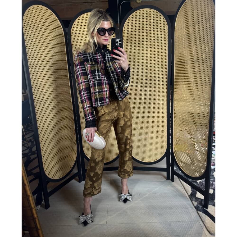 These matching knit pieces make a classic suit and the noir bows Mel Button down is the perfect layering piece underneath. This look is perfect for almost any occasion from office to travel.