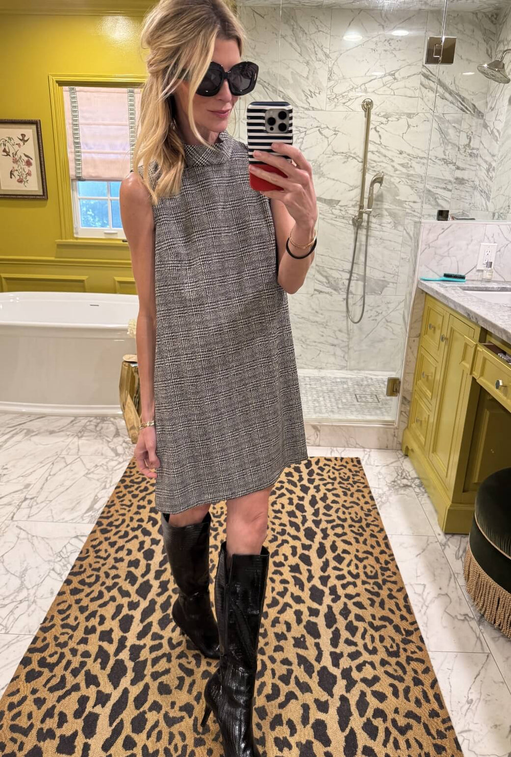 Knee high boots add extra style to this classic dress. Add a coordinating blazer for cooler days.