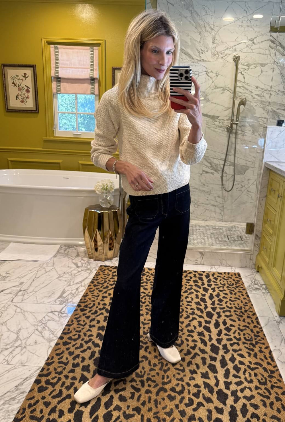 For a cozier look, our Carlyle Sweater in ivory is a classic finish.