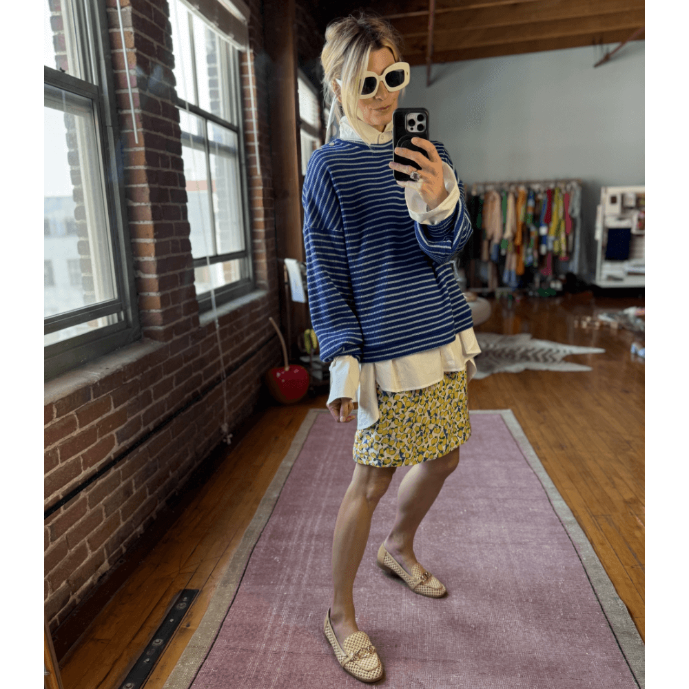Get more wear out of the pencil skirts in your closet by dressing them down. Pairing this lemon print with the Snappy Pullover (layered over a crisp white button down) makes for a comfy but polished ensemble.