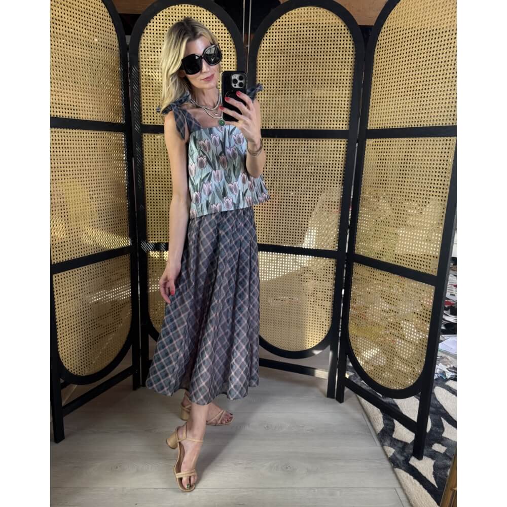 The shoulder ties of the Pillar Top match the Smocked Waist Skirt and make the most delightful set. Easy to style and fun to wear!