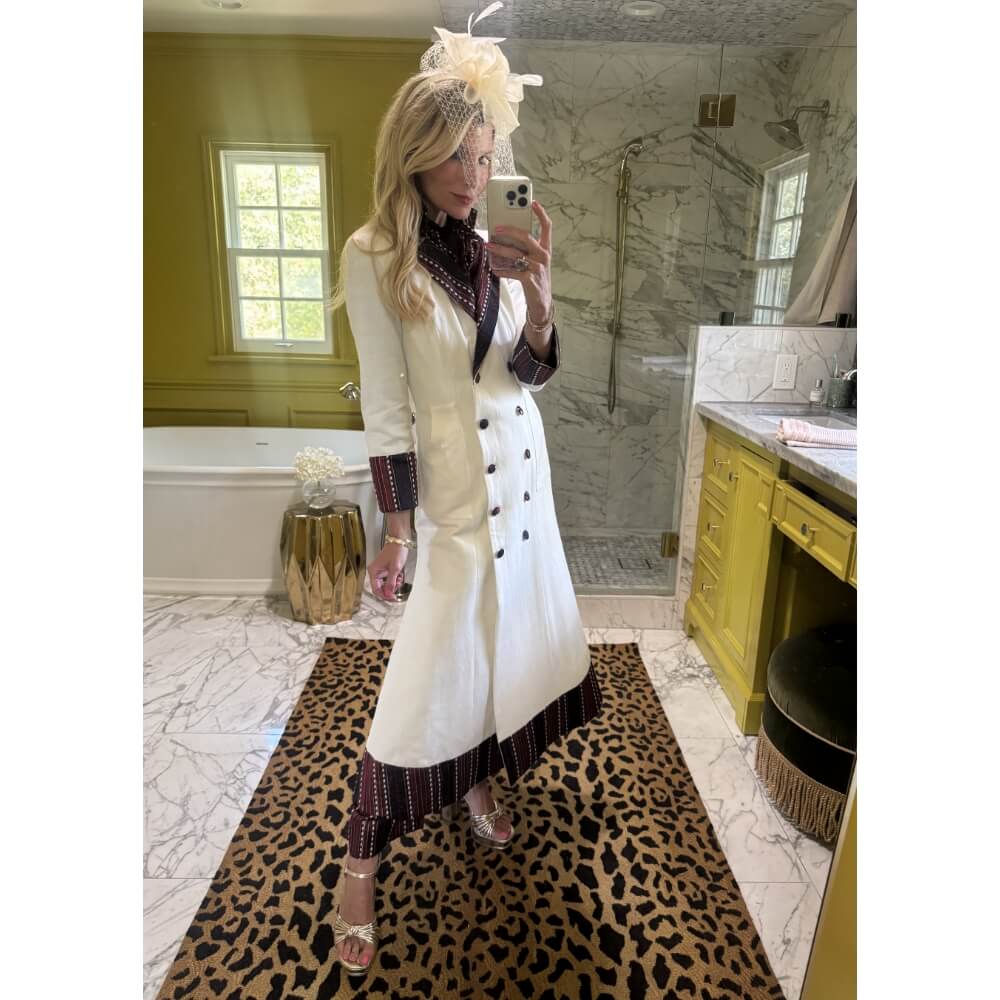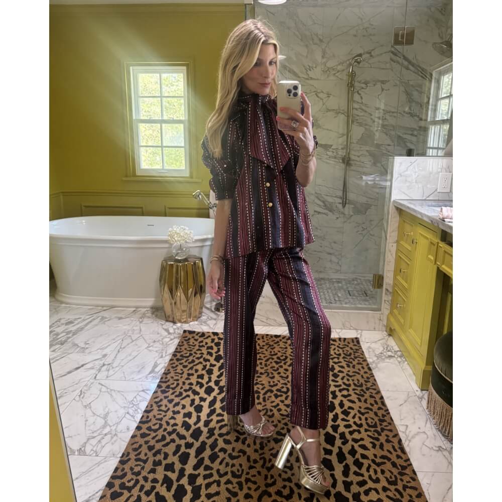 A signature piece from the BURU Library, the Charlie Pant pairs timeless sophistication with effortless ease. With a high-rise waist, flat front, and wide-leg silhouette, it offers a polished fit—with functional pockets, of course! The Run for the Roses edition is elevated in a stunning navy silk embroidery. Style it with the coordinating bow blouse for a head to toe look, or with a crisp white top for versatile elegance. The Charlie Pant brings polish and presence to every step.