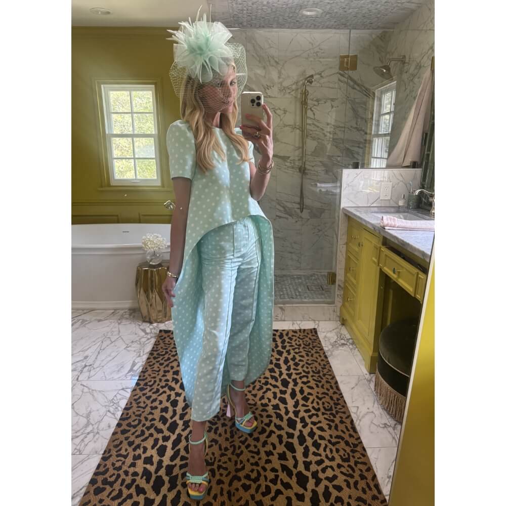 The Derby Collection is brimming with exquisite textiles—and this classic polkadot is no exception. Inspired by our beloved Lee Top, this version features an eye-catching high-low silhouette that brings an editorial edge to the look—especially when styled with the matching Run for the Roses Cropped Cigar Pant. Top it off with a fascinator and stilettos (with flats in your bag, of course), and get ready to be the main event on Derby Day.