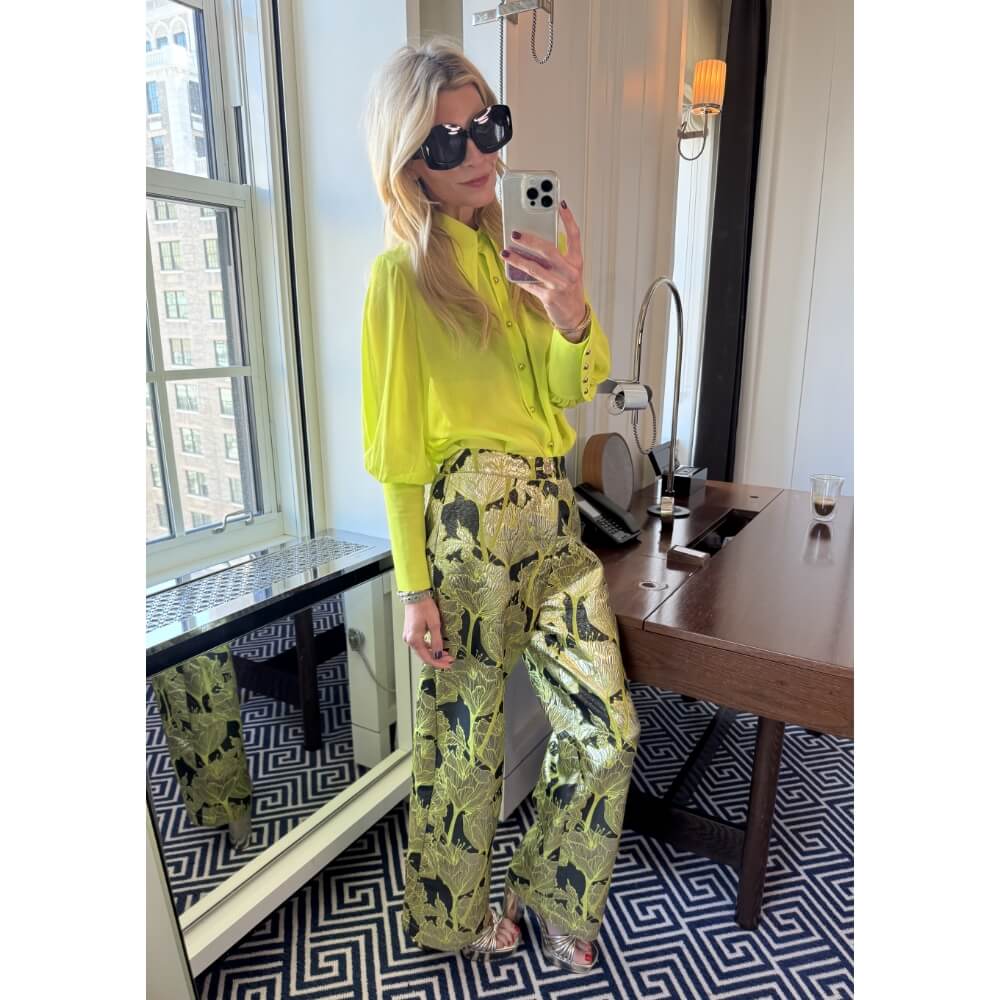 The tone of the bright Skipper Blouse makes her a perfect combo for the chartreuse pieces in your wardrobe (she tows the line between yellow and green just perfectly!). Pair her with a dressier trouser for a statement-making evening outfit.