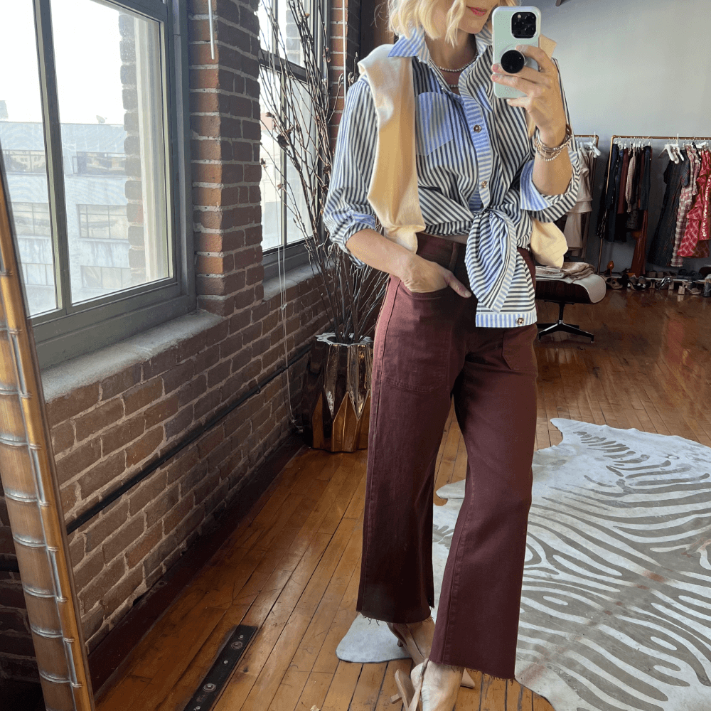 For complete versatility, treat the Shirtdress as a top. With an oversized knot, pair back to your favorite jean and add a long sleeve top draped over your shoulders to complete the look.