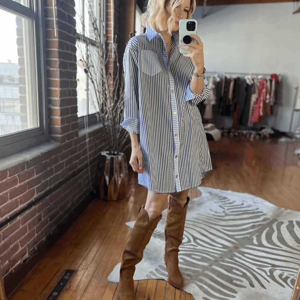 Knee high boots and this Boyfriend Shirtdress create an unexpected and flirty pair.