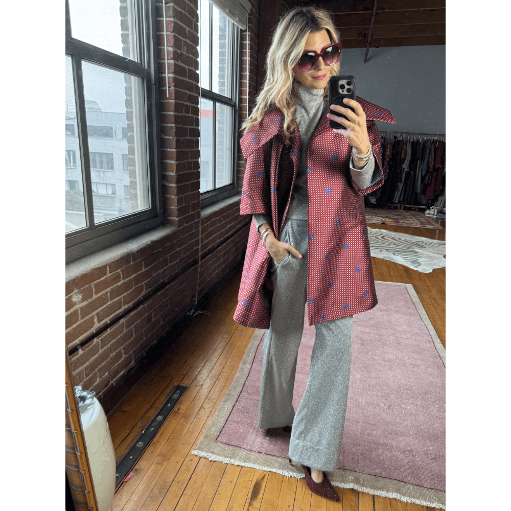 The Car Coat in Gingham Rose is a great addition if you want to break up the look of the silver sparkles (or just need a layer for warmth!). The rose, blue and silver color palette is a winter dream!