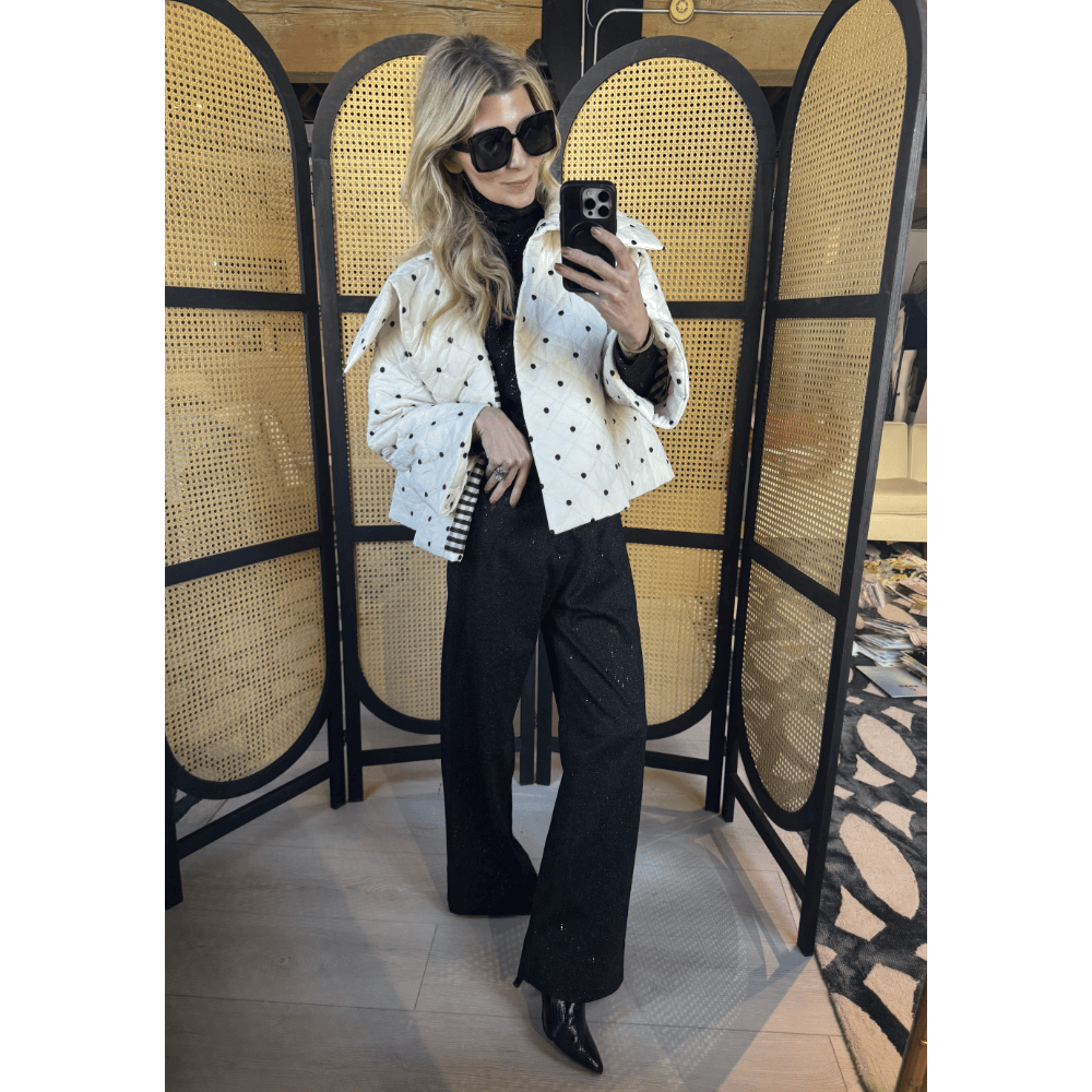No day on the slopes is needed to wear the Après Ski Coat. It can become your winter go-to for any occasion. We love it here as the topper to our black sparkle set for a classic black and white look.