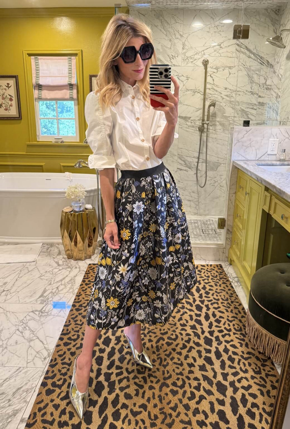 We love to pair a classic white button down with a traditional party skirt silhouette. The Brett Button Down and Reed Skirt are a perfect pair!