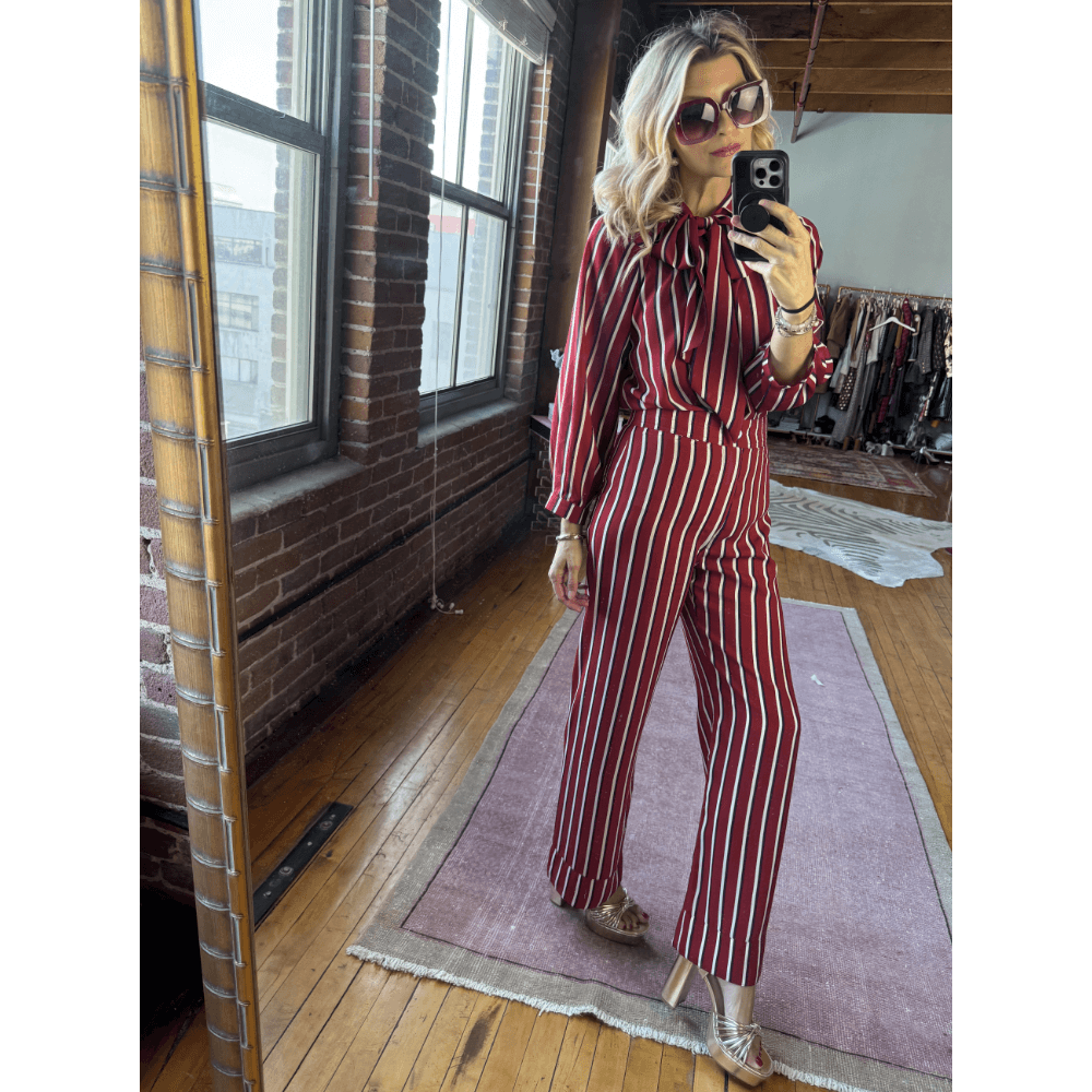 Need an elevated pantsuit? These two matching pieces combine for a look that is sophisticated and retro-inspired.