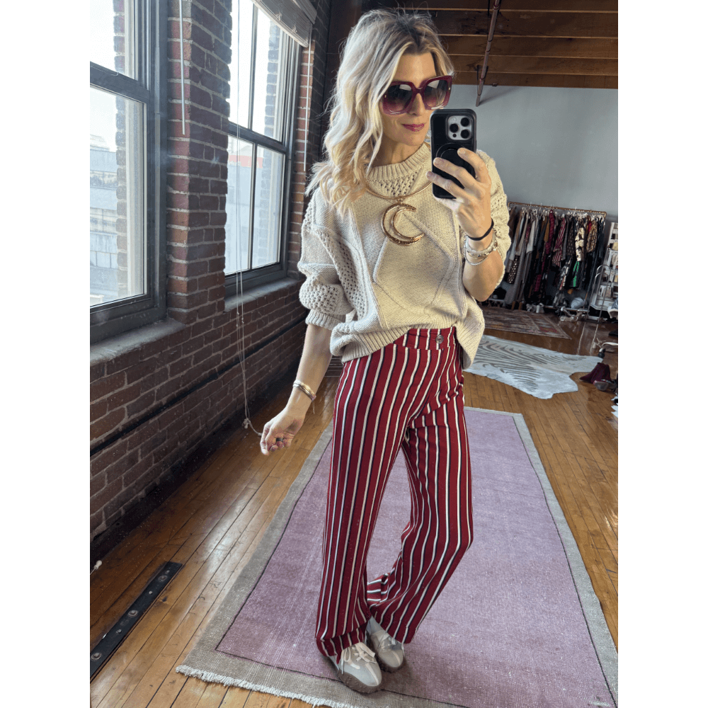 Taupe & Red Stripe Knit