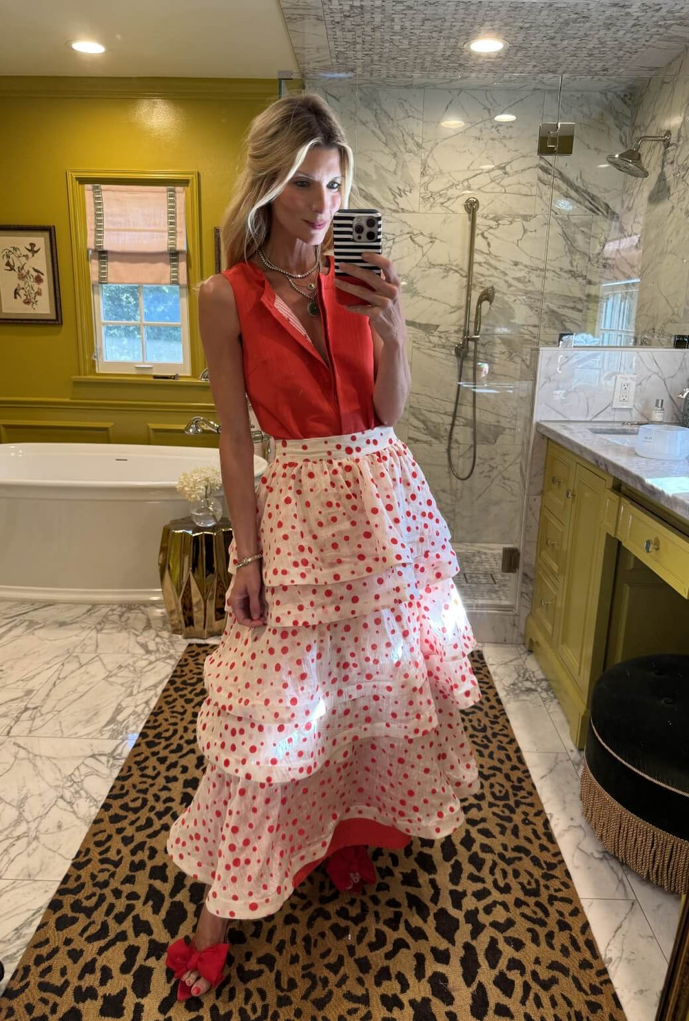 At Buru, you know we love dressing up! Adding our Flocking Dot Teagan adds holiday cheer and whimsy! And the peek-a-boo of red moiré at the hem is the icing on the yule log.