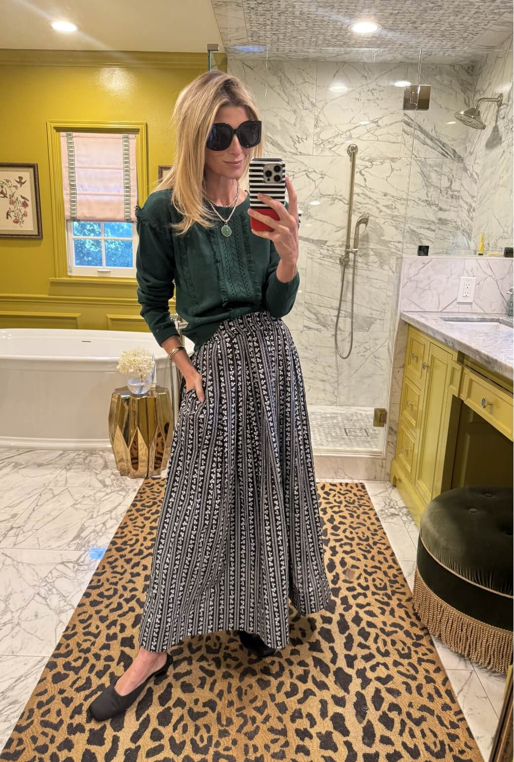The Gen Skirt is a fresh take on our Everyday Midi, featuring a flatter front and a bit less volume. But don’t fret, she still has a hidden elastic waistband and a back pocket roomy enough for your phone. This edition is crafted in a black and white floral that stands out in all the right ways. Pair her with the white gingham Bow Blouse for a softer, statement-making look, or try a contrasting black and white stripe Audrey Top for a bold black and white moment. She also pairs beautifully with a simple white tee or sweater and boots, making her a true all-season staple.