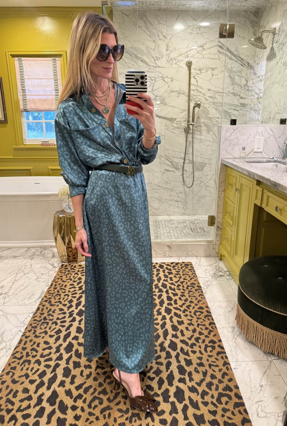 The Leland skirt paired with our sleek mandarin shirt delivers easy comfort with a smooth, satin finish that feels chic and refined. Cinched at the waist with our deep green Buru Buru signature belt, this look is made to stand out.