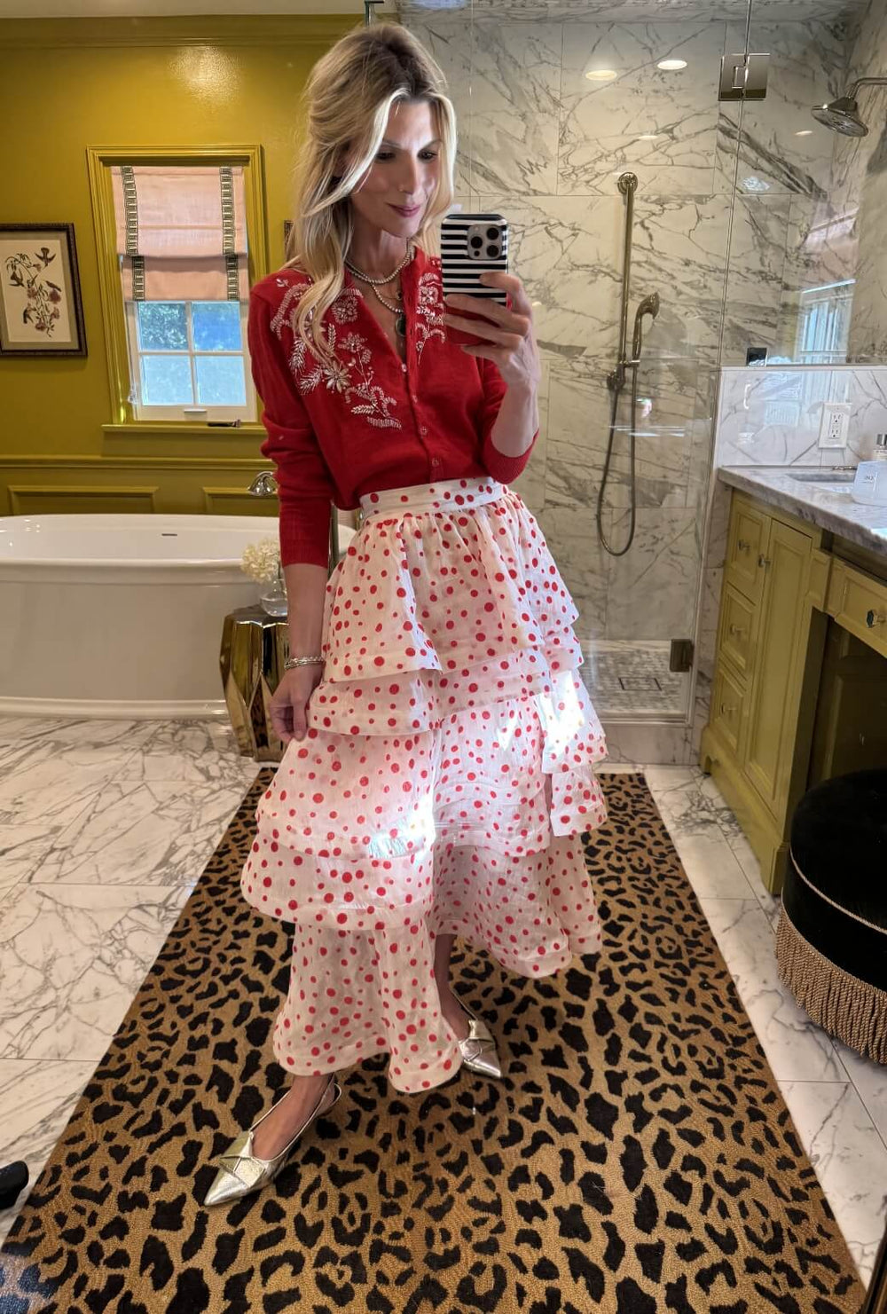 Our Mable in red is the ultimate topper for our flocking dot Teagan. Two special pieces make one fabulous combination.