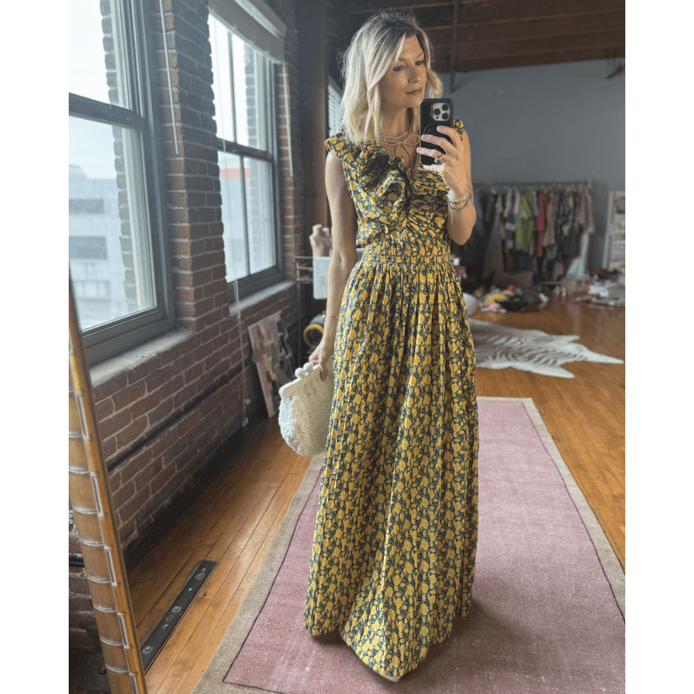 Inspired by one of our favorite characters of all time, The Blanche Dress has Devereaux written all over it. This Golden Girl is pleated to perfection and now she's available in a sleeveless gown-length silhouette. With the same smocked waist, snap front and pretty floral pattern, she's easy to wear and elevated for your special summer occasions.