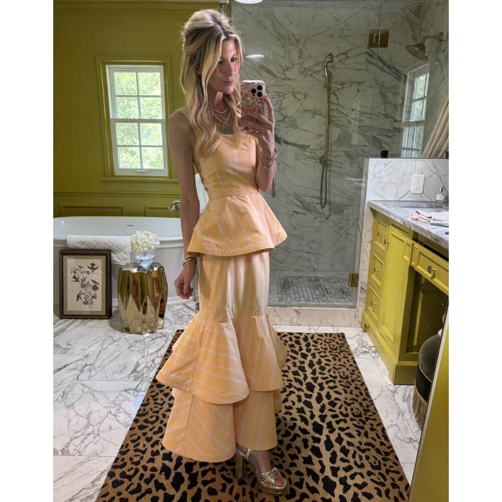 If the tiers of a classic Teagan Skirt aren’t quite your vibe, our Trumpet Teagan might hit the right note. With a sleek fit through the hips and a flirty flare at the hem, she brings all the drama. In sun drenched citrus stripe cotton, flat front with an elastic back waist, and pockets (of course!)—she will be your go to summer maxi. Not to toot our own trumpet… but, you know.