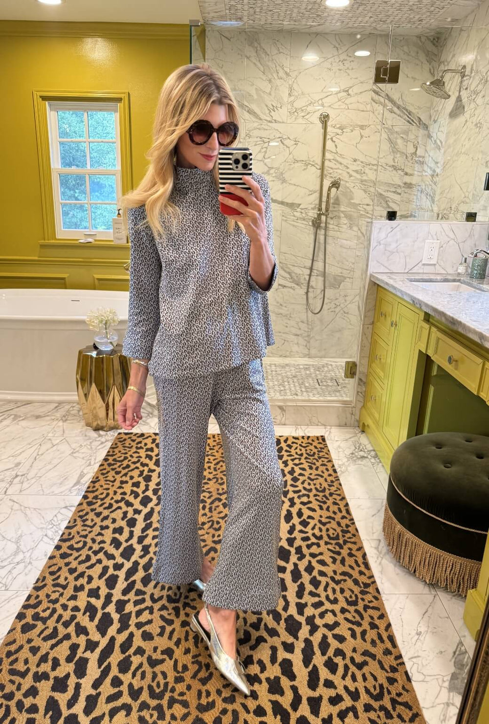 If head-to-toe cheetah print overpowers you, a simple white top is a no-brainer choice to style with the Wide Leg Trousers. An easy look for the office or a fun "ladies who lunch" get together.