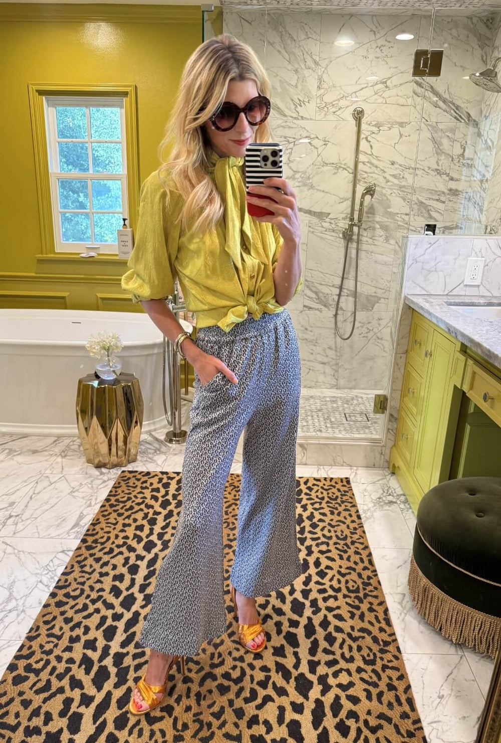 A pop-of-color blouse change creates a whole new look with these cheetah print Wide Leg Trousers. This look is perfect for the office with the blouse tucked in, then give it some flair for date night with a quick knot at the waist.